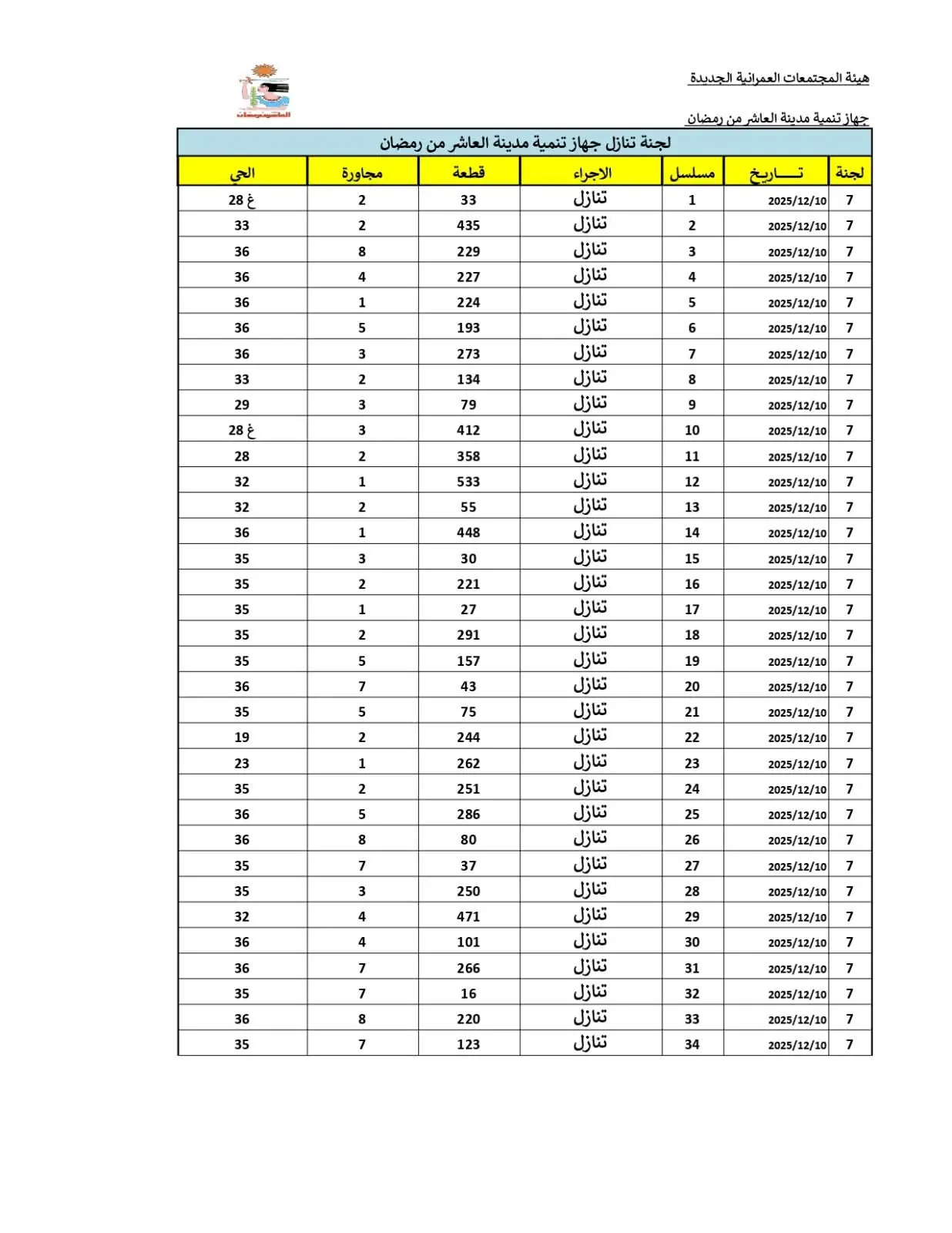 الإعلان عن طلبات التنازل المعتمدة بالعاشر من رمضان.. تعرف عليها