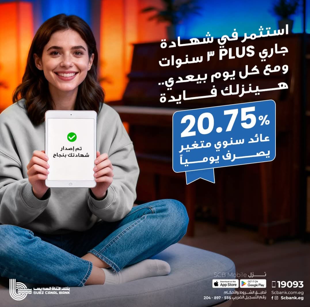 وأكد بنك قناة السويس أن طرح شهادة “جاري بلس” يأتي في إطار حرصه على تقديم حلول ادخارية مرنة تلائم احتياجات مختلف شرائح العملاء، ودعم توجه البنك نحو تعزيز الادخار الذكي والتحول الرقمي عبر تطبيقه المتطور SCB Mobile.