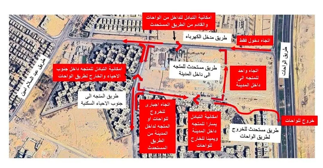 ومن جانبه، ناشد الدكتور مصطفى عرندة، المتحدث الإعلامي لجهاز المدينة، قائدي المركبات بضرورة الالتزام الكامل باللوحات الإرشادية والمسارات الجديدة، واتباع تعليمات رجال المرور، حرصًا على سلامة الجميع وضمان انسيابية الحركة.