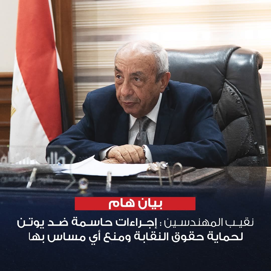 في ظل الجدل الدائر خلال الأيام الماضية حول حصة نقابة المهندسين في شركة “يوتن للدهانات”، أصدر المهندس طارق النبراوي نقيب المهندسين بيانًا رسميًا لتوضيح الحقائق الكاملة حول القضية، مؤكدًا أن النقابة لن تفرط في أي من حقوق أعضائها، وستواصل الدفاع عن حصتها في الشركة بكل الوسائل القانونية المشروعة.