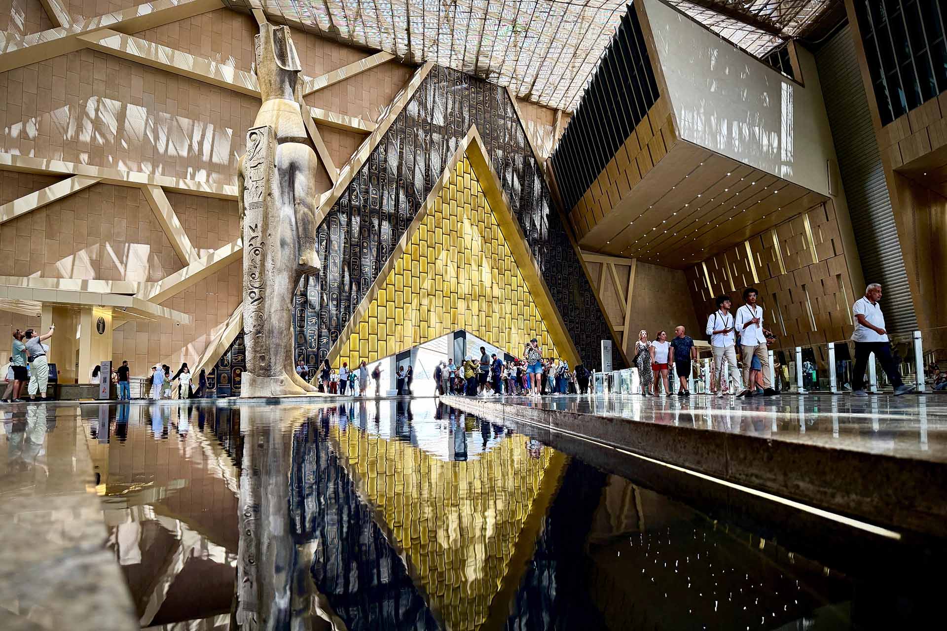 يقع المتحف على أعتاب هضبة الجيزة، على بُعد كيلومترين من الأهرامات، ويُعد أضخم متحف في العالم مخصص لحضارة واحدة، إذ يضم أكثر من 100 ألف قطعة أثرية تحكي قصة مصر على مدار آلاف السنين، من ضمنها كنوز الملك توت عنخ آمون كاملة لأول مرة في التاريخ.
